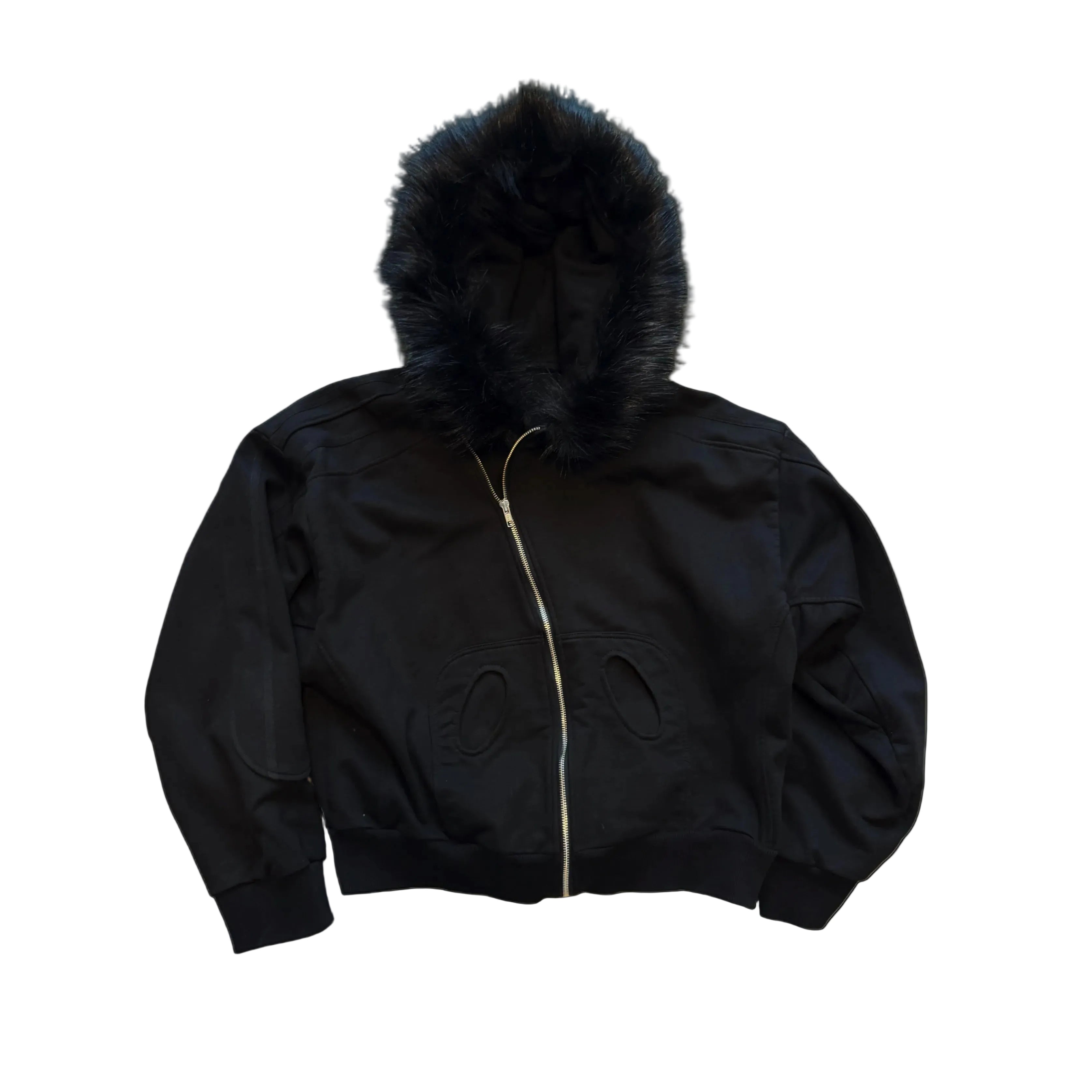 FUR ZIP HOODIE BLACK